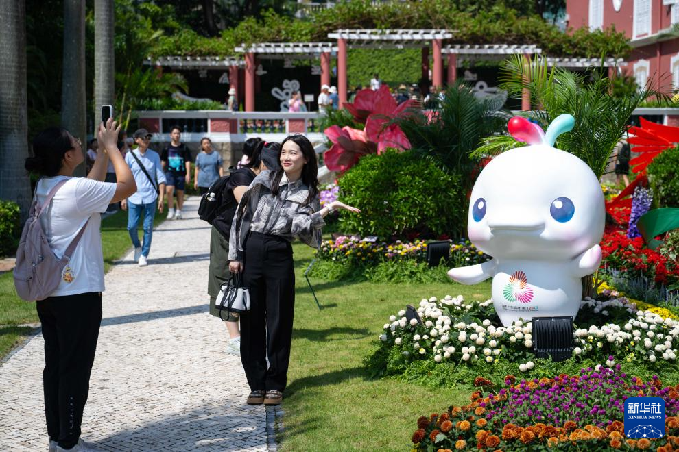 公眾還可漫步花園,欣賞大型花卉展?;ɑ苷挂允暹\會為主題,選用主題花乒乓菊等超過20種花卉植物作布置,加之活潑可愛的十五運會吉祥物“喜洋洋”“樂融融”,營造活力與喜慶氣氛。