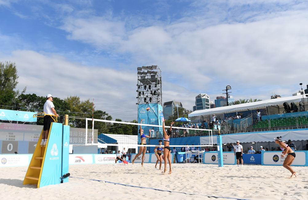 新華社香港10月31日電(記者曹奕博、劉歡)第十五屆全國運動會香港賽區賽事31日正式拉開帷幕,首個競賽項目沙灘排球在維多利亞公園展開角逐。