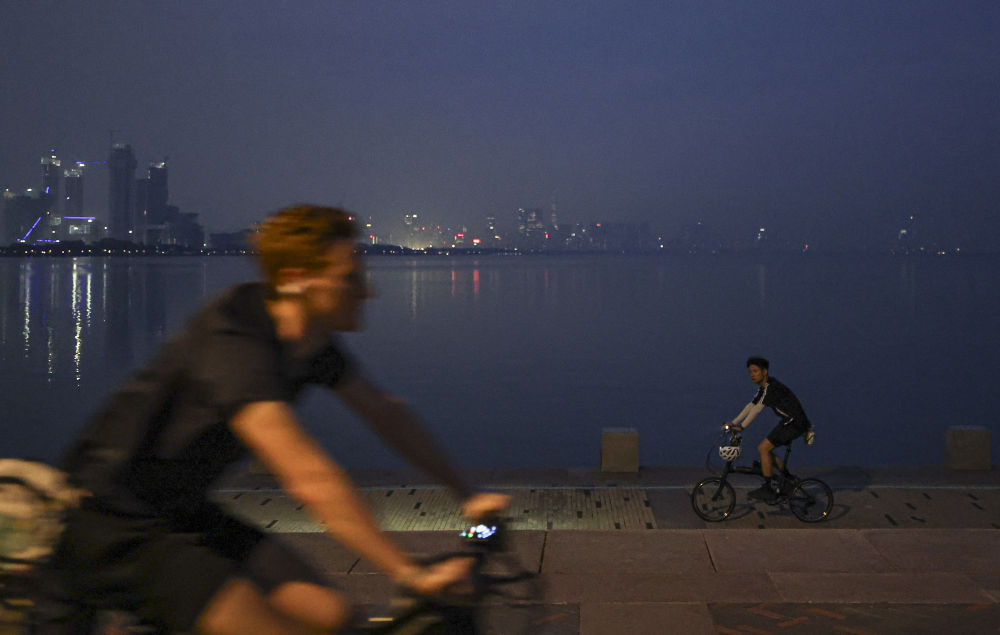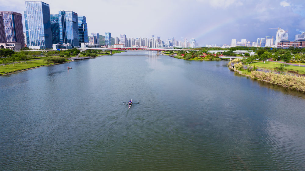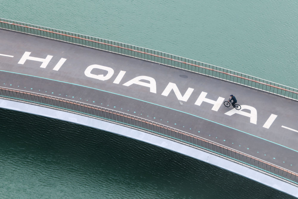 ↑2025年10月24日,市民在深圳前海騎行。新華社記者 梁旭 攝