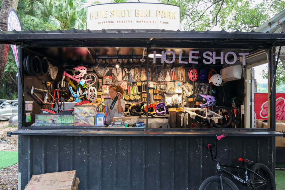 ↑2025年10月31日,黃蘊瑤在位于深圳福田區的HOLE SHOT騎行公園里工作。新華社記者 梁旭 攝