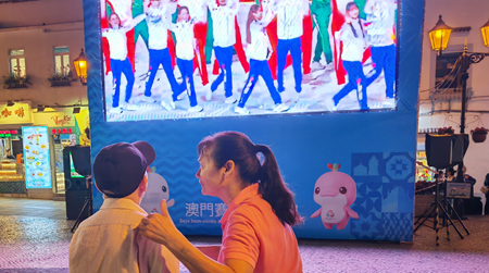 19日,“中華體育精神頌”十五運站在澳門舉行?;顒右浴绑w育公開課”的方式展開,進行了人工智能輔助教學演示、世界冠軍互動交流等環節。