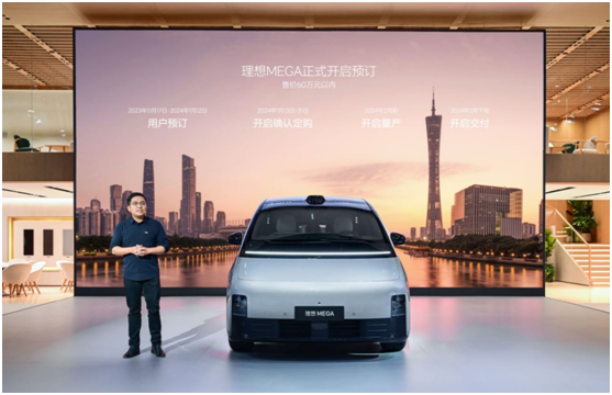 2023年11月17日,理想MEGA在2023廣州國際車展完成全球首秀,并同步開啟預訂,預計售價60萬元以內。按照規劃,理想MEGA將于12月正式發布,并于明年2月開啟量產和用戶交付。