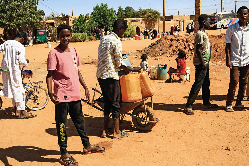 1月18日,在蘇丹首都喀土穆西部恩圖曼市,一名居民在搬運飲用水