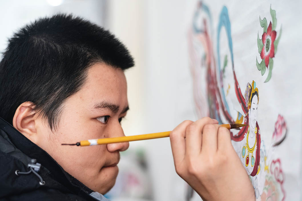 在四川省成都市一家中醫盲人理療店里,“瓷娃娃”胡星在創作繪畫作品