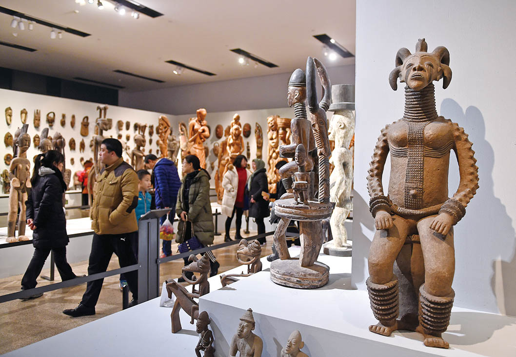 2018年2月17日,觀眾在國家博物館觀看《非洲雕刻藝術精品展》