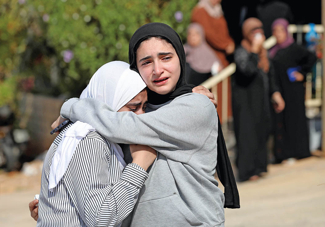 2024年9月5日,在約旦河西岸城市圖巴斯,巴勒斯坦民眾因親人在以色列空襲中喪生而痛哭