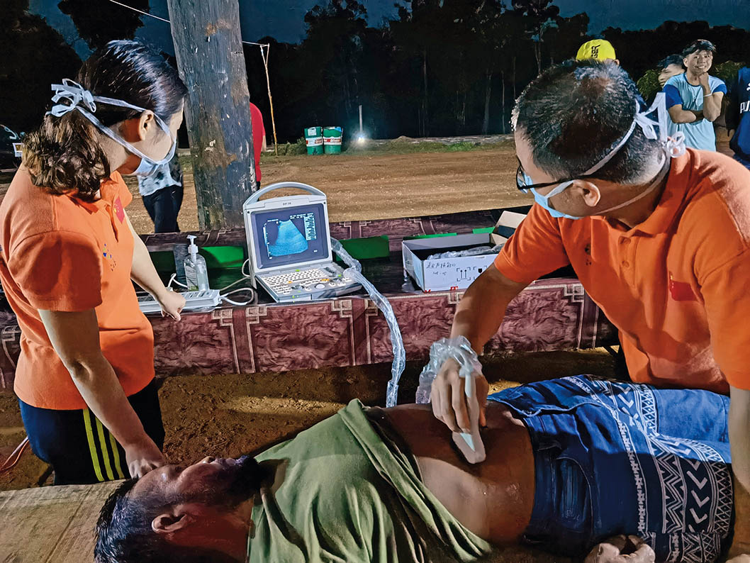 2022年2月12日,中國醫療隊在圭亞那中資企業榮安公司林區駐地為工人做檢查