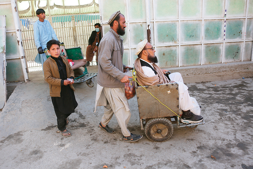 與哈桑相比,記者見到的更讓人揪心的是那些被重疾擊垮的阿富汗難民,更有甚者,躺在棺木里被家人朋友們用板車推著跨過了邊境線。