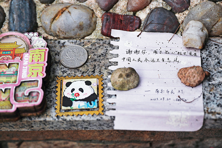 南京人梁爽在德國學習工作十幾年,常帶著從中國來的家人、朋友、同學前往拉貝墓前憑吊?!案兄x他,在那種至暗時刻保護了那么多中國民眾?!?/p>