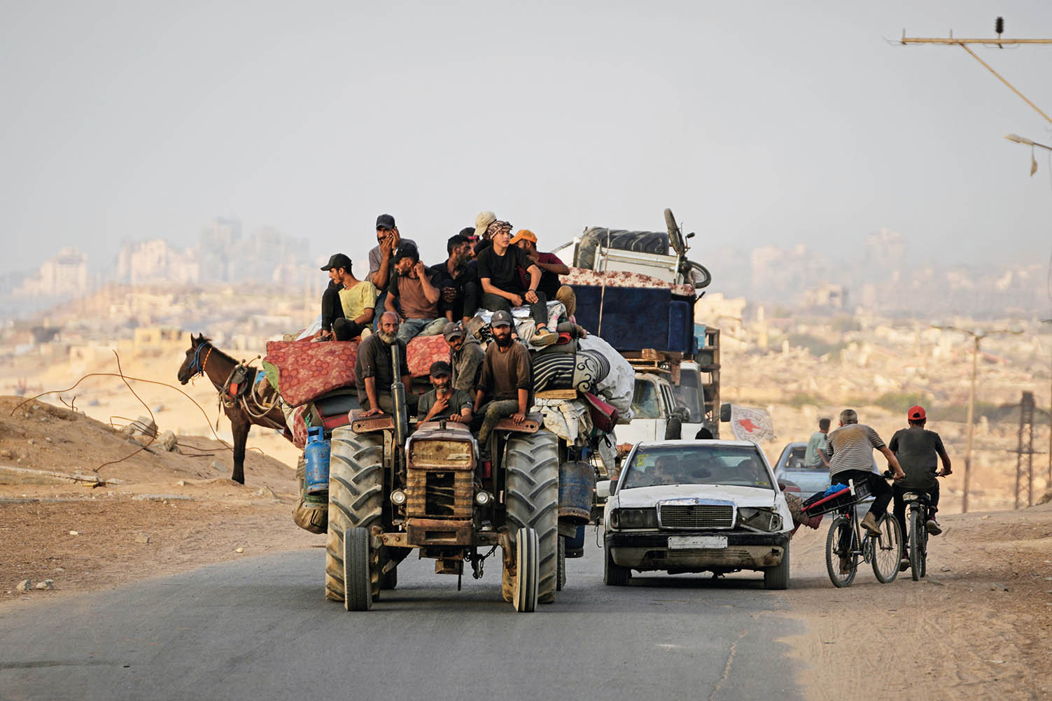 9 月 6 日,巴勒斯坦人攜帶家當從加沙地帶北部撤離,駛向南部