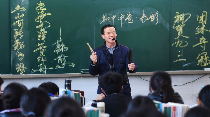 看不清學生,他便用撲克牌抽簽的方式,隨機點名提問。為了吸引學生注意力,他還將教材內容編成順口溜和快板書,在課堂上唱出來,深受學生喜愛。