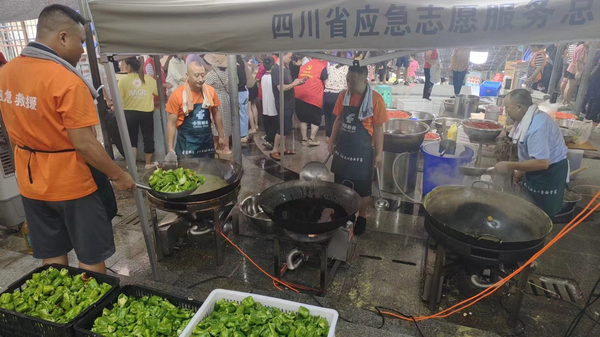 7月27日,四川省瀘州市古藺縣遭遇極端強降雨,縣城大面積停電,道路積水、交通受阻嚴重。鄧克彬聽到消息后主動請纓,率先跟隨瀘州應急后勤保障大隊去往古藺縣,在救災一線負責燒菜煮飯,為當地受災群眾提供暖胃又暖心的餐食。