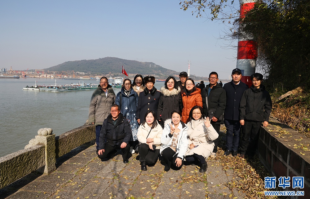 “中國網事·感動2023”年度人物參觀江夏槐山磯駁岸合影留念。新華網連迅攝
