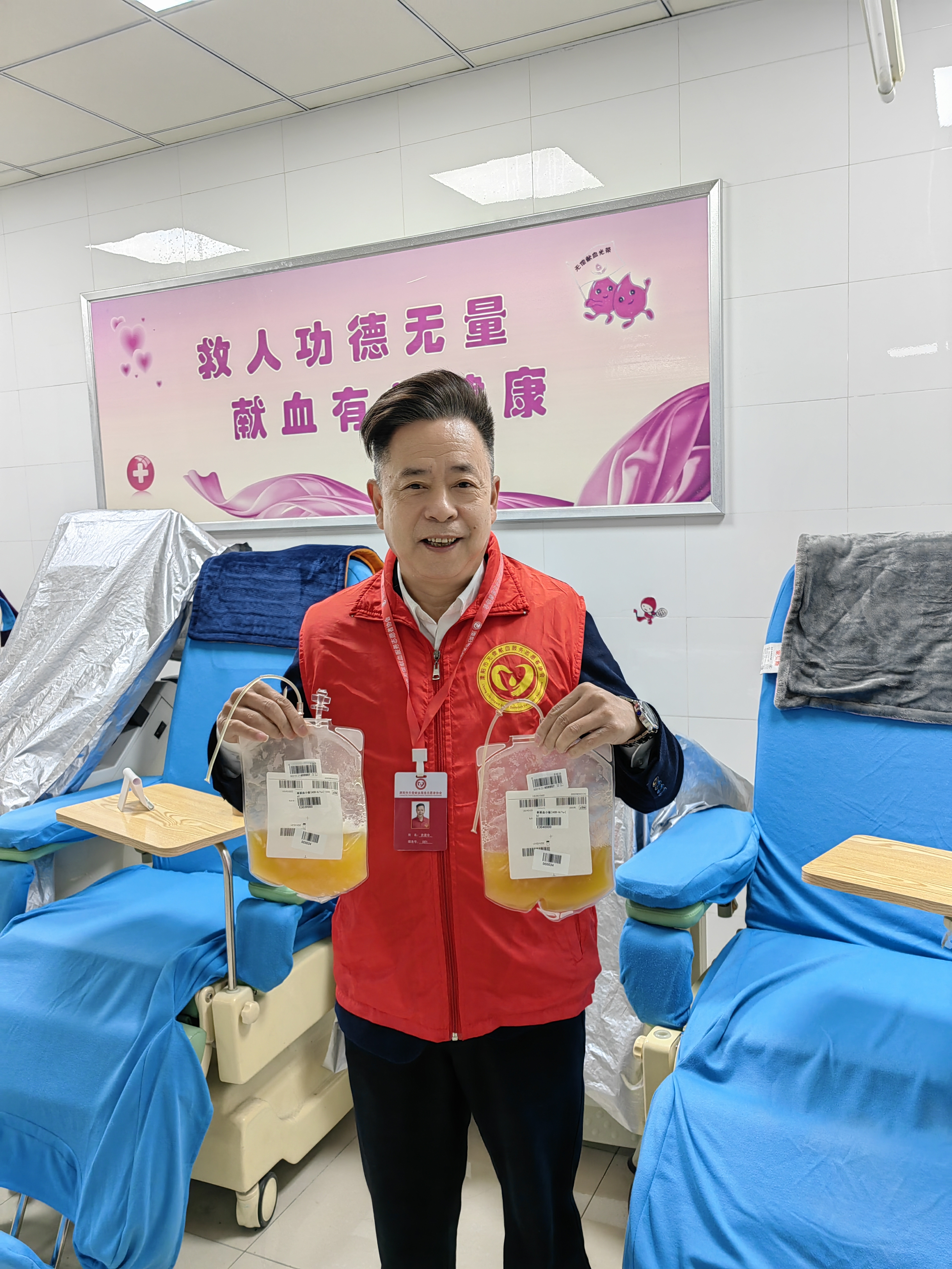 1999年,史建中第一次在獻血車上獻血?!澳憧赡懿恢?,這一袋血或許就可以拯救一條生命?!弊o士不經意的一番話扎進了史建中的心里。從1999年至2023年,史建中共無償獻血158次,累計獻全血6100毫升、血小板274個治療量,獻血總量達60900毫升,點亮了304人的生命之光。