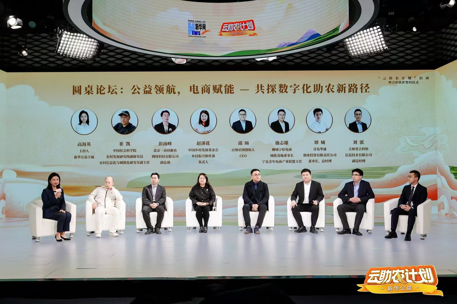 圓桌論壇環節,來自不同領域的專家學者、企業代表圍繞“公益領航,電商賦能——共探數字化助農新路徑”進行深入探討。中國社會科學院農村發展研究所副研究員、農村信息化與城鎮化研究室副主任崔凱,中國電商鄉村振興聯盟副主席、北京一畝田新農網絡科技有限公司副總裁彭南峰,百納星圖創始人CEO邱旸,獅城寧好電商網批基地董事長施志雄,中國鄉村發展基金會鄉村振興協作部負責人趙溪花,青島華通創業投資有限責任公司董事長、總經理譚嘯,吉科軟副總經理劉派分享了數字化技術在鄉村經濟中的廣闊前景及實踐案例。嘉賓們從各自擅長的領域和實踐經驗,探討了新媒體在推廣鄉村特色產品中的獨特作用,以及社會資本如何更高效地助力鄉村經濟等話題,為新華公益“云助農計劃”的未來發展提供了寶貴的思路。