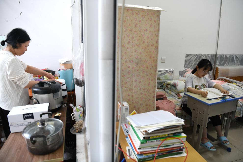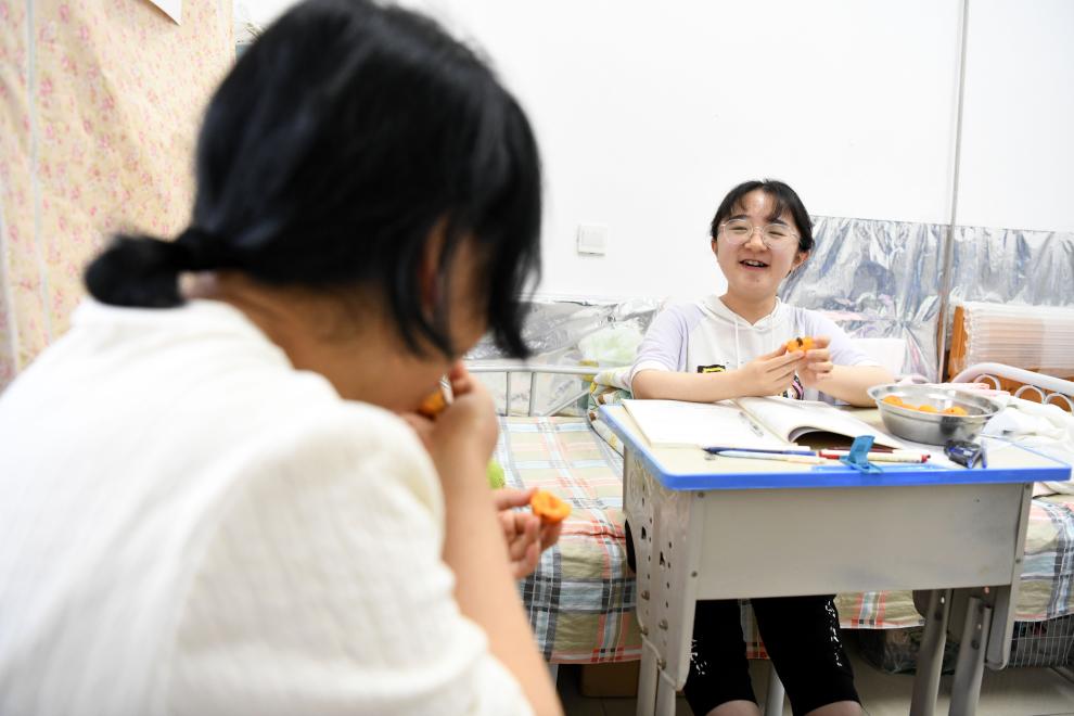 5月25日,在宿城一中宿馬學校宿舍,王子文(右)在復習備考。