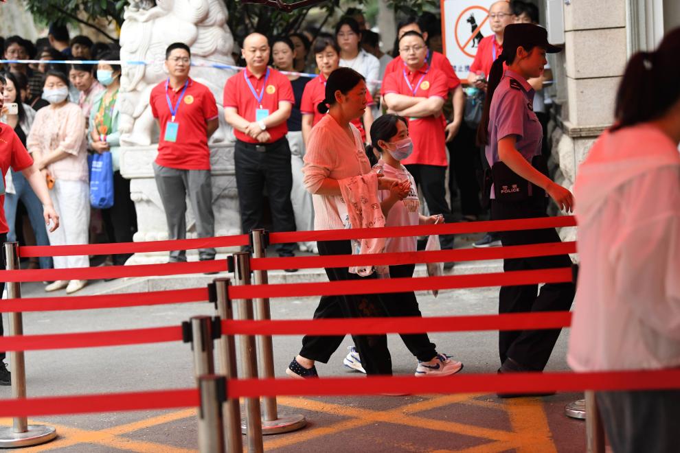 6月7日,在宿州市的一處高考考點外,王子文在媽媽許成香的陪伴下進入考點。