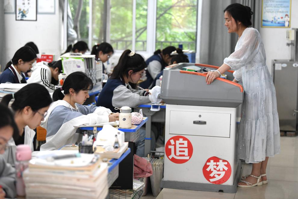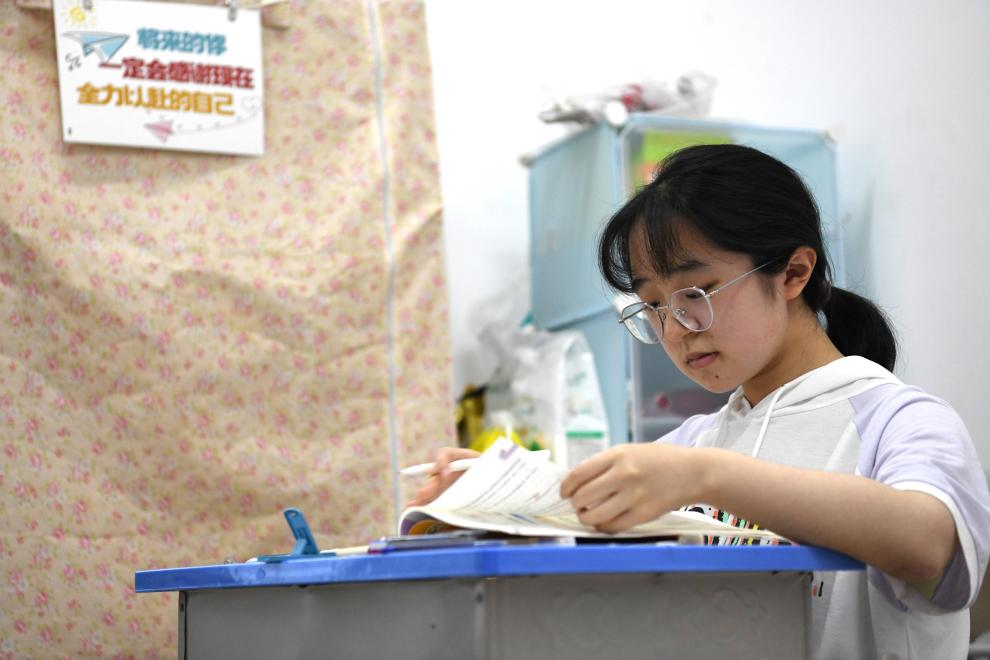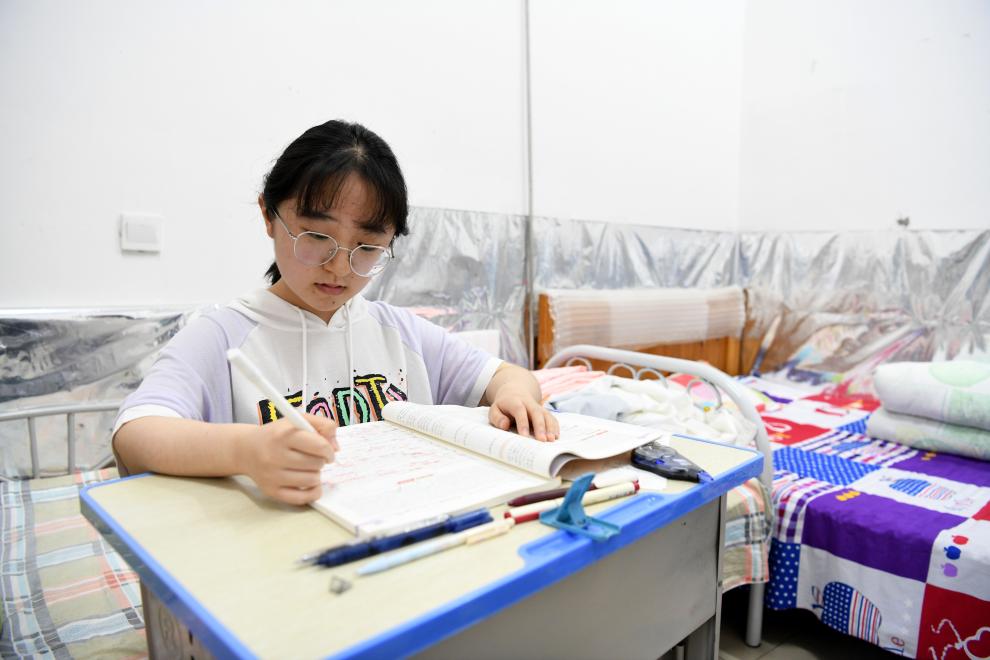 5月25日,在宿城一中宿馬學校宿舍,王子文在復習備考。