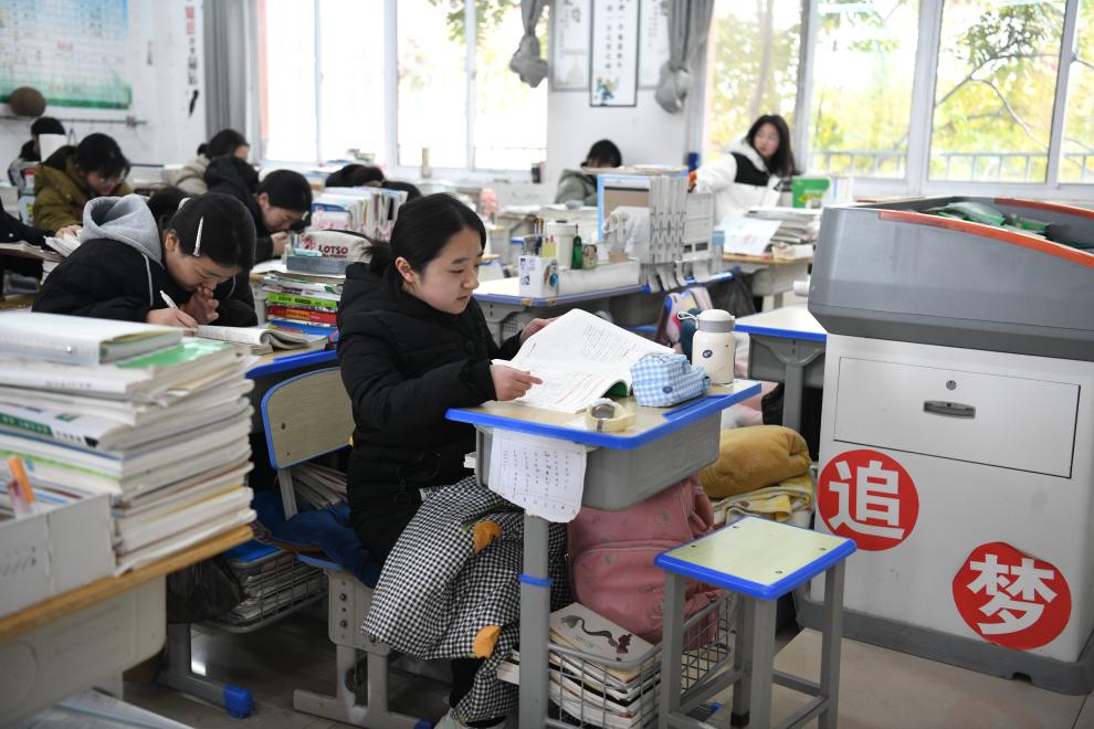 在宿城一中宿馬學校,王子文在教室自習(2024年12月12日攝)。