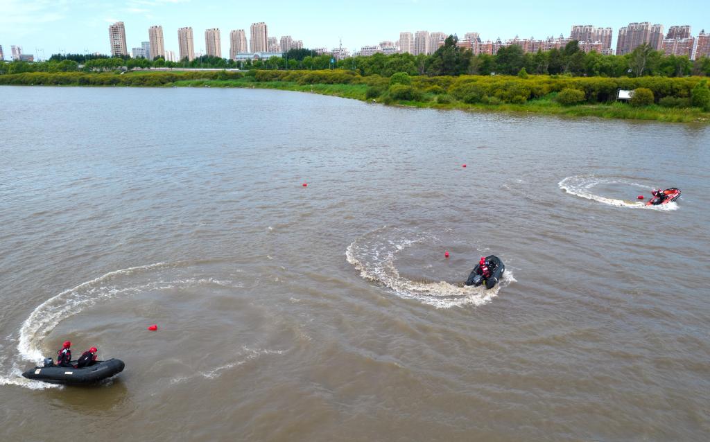 8月5日,黑龍江省森林消防總隊哈爾濱市支隊在松花江哈爾濱段舉行水域救援演練,檢驗隊伍練兵備戰水平,提升綜合實戰救援能力。