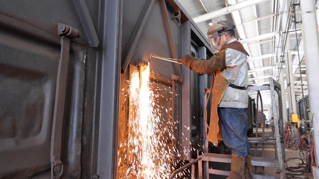 國鐵成都局貴陽南車輛段主要負責貴州區域貨車檢修工作。由于夏季電煤車、糧食車的集中檢修任務和相關技術改造工作的要求,修車車間的熔焊工們手持電焊槍,在電光火石之間,為貨車“整形”“換衣”。