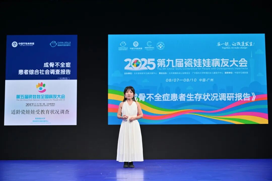 北京病痛挑戰公益基金會創始人、理事長王奕鷗分享了成骨不全癥群體的最新調研數據:教育拒收率從54%降至39%,完成本科及以上教育的患者比例從2019年的17.78%上升到2025年的19.46%。