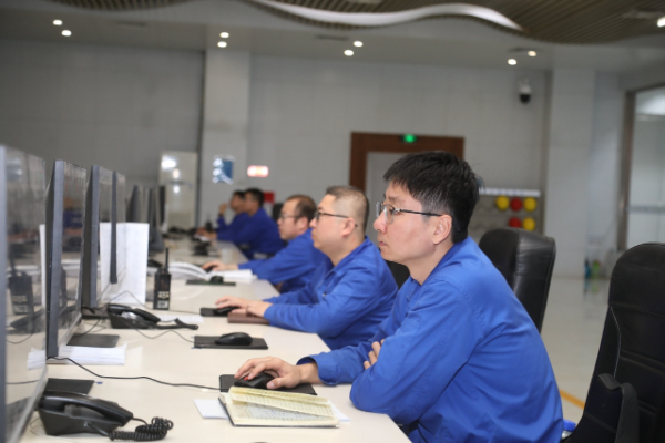 來到儲熱閥門隔壁的集控室設備間,筆者看到,運行人員正通過數字運行平臺有條不紊地觀察著儲熱系統各個部位的溫度、壓力等運行數據。在看似簡單的儲能罐外表之下,熔鹽儲熱系統內部構造卻極其復雜。為了更好地適應新運行系統帶來的改變,在正式投產之前,魏家峁煤電公司對集控中心、運行和巡視檢修人員開展了一場為期兩周的全員專項培訓?!皩τ诖蟛糠致毠ざ?,熔鹽儲熱尚屬新事物,我們一方面通過理論知識、工藝流程、操作規程等加強員工培訓,同時,在培訓過程中還會進行應急演練,提升突發事故應對處理能力,守住安全生產的底線和紅線?!蔽杭裔姑弘姽具\行部部長韓麗明強調。