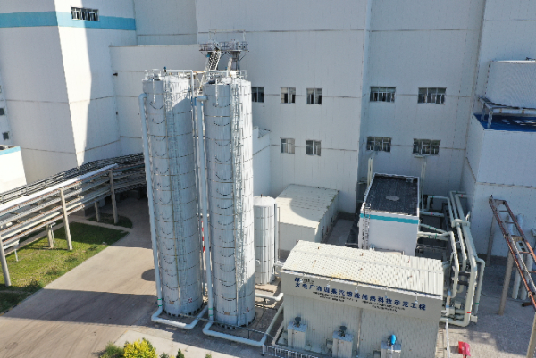 來到華能魏家峁煤電公司的生產廠區,白色的熔鹽儲熱裝置矗立在主廠房北側,與周圍的儲熱水罐相得益彰。這是國內首臺套60萬千瓦及以上燃煤電廠耦合高溫蒸汽熔鹽儲熱系統示范工程。