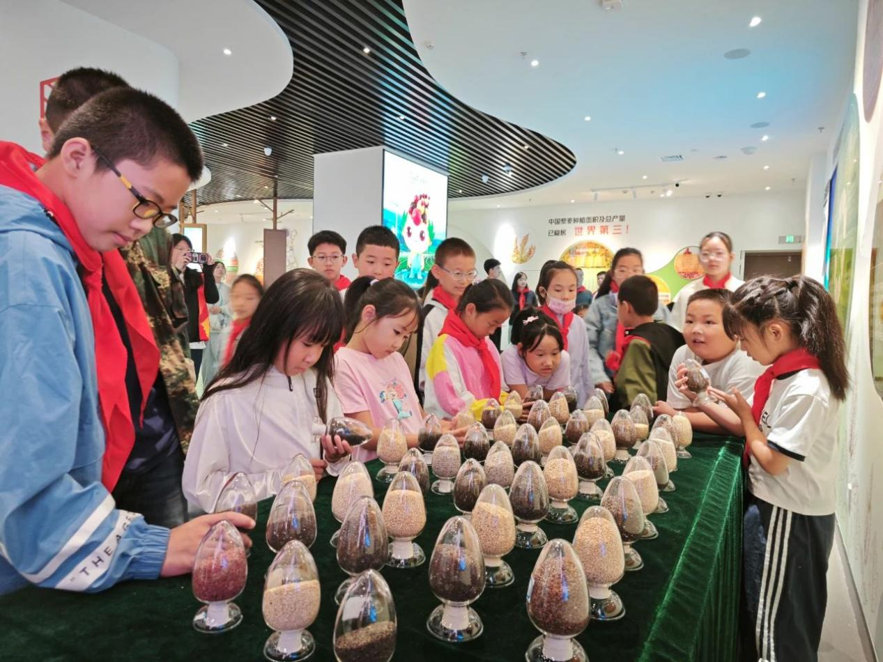沽源縣藜麥館內,孩子們參觀陳列展品