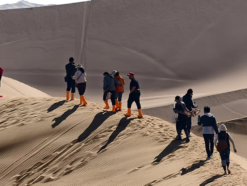 在世界上唯一與城市相連的沙漠——庫木塔格沙漠景區內,不時有游客結伴攀登,感受“城沙共生”、大漠風光與江南秀色同框的奇跡。景區管理委員會主任溫靜介紹,每年春秋兩季,景區都會開展親子植樹造林活動,邀請家長與孩子共同認領樹苗、栽種綠植,以實際行動為沙漠增添綠色。通過生態保護與文化傳承雙向發力,才能為游客提供更好的游覽體驗。