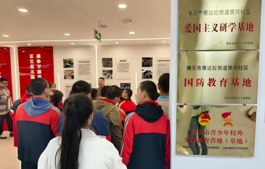 博樂市青達拉街道銀河社區的愛國主義研學基地設有老兵讀書角、國防科普展區、航天科技展示等區域,如今已成為居民文化生活的“充電站”。記者探訪當天,一場特殊的國防課正在進行,講課的是退伍兵志愿者,聽課的是特殊學校的孩子們。孩子們瞪大了眼睛,被一排排炮艦模型和各式軍服深深吸引。