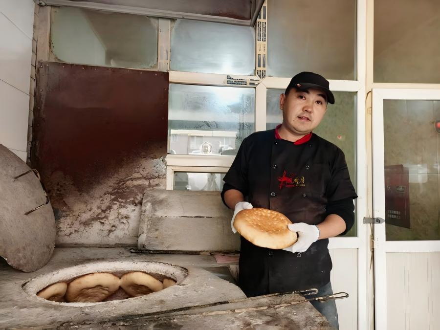 2025年10月24日,孜來地拜克端著剛出爐的馕充滿喜悅。新華網記者李雪芹 攝