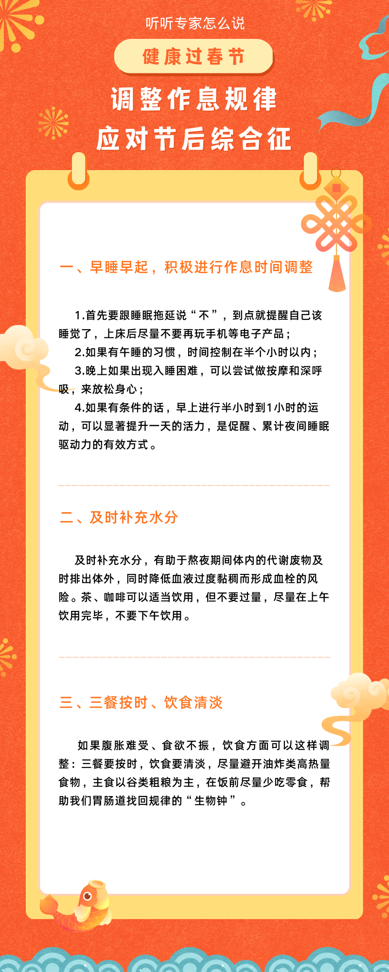 春節長假即將結束,由于持續較長時間的生活不規律,有的人開工后出現節后綜合征,有失眠困倦、食欲不振、不想上班等現象。