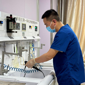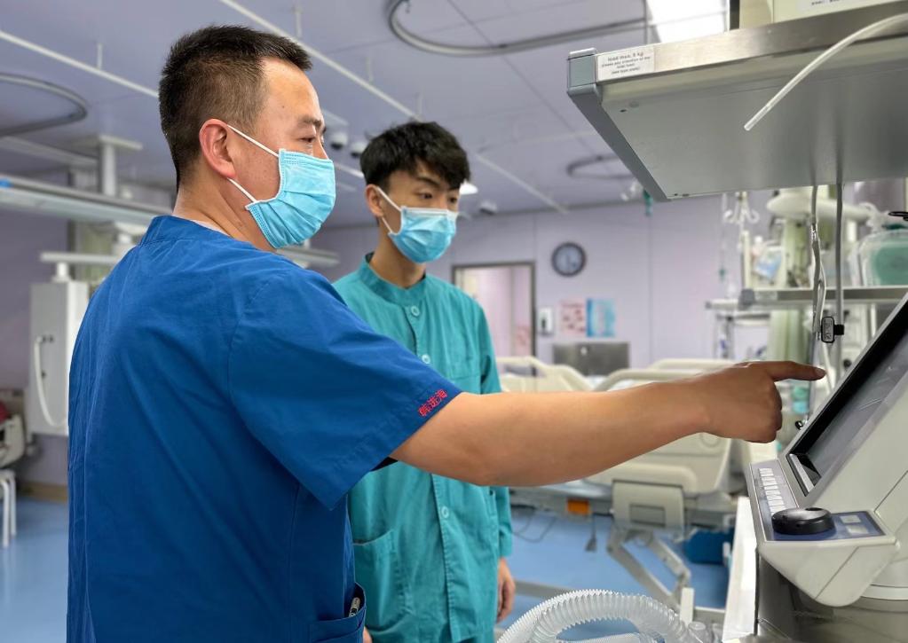 “如今科室逐漸發展壯大,近120名護士同心協力,為患者生命健康保駕護航,22名男護士在科室承擔ECMO(體外膜肺氧合)、CRRT(連續腎臟替代療法)等呼吸治療工作,發揮著重要作用?!鼻嗪J∪嗣襻t院重癥醫學科護士長孫曉林說。