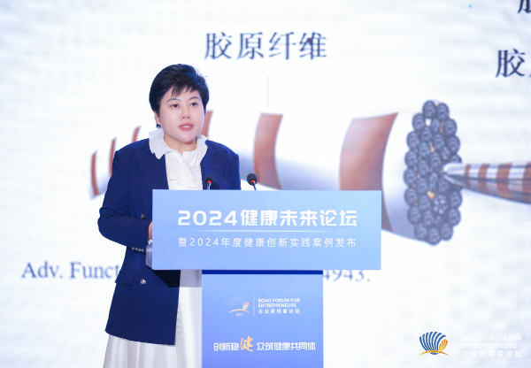 值得一提的是,錦波生物的“重組人源化膠原蛋白生物新材料項目”入選了此次“2024年度健康創新實踐案例”。作為全球重組人源化膠原蛋白生物材料的開創者和標準制定者,楊霞提到,該材料打破了傳統膠原蛋白不能用于血管修復的瓶頸,可以廣泛用于血管內皮、復雜創面、陰道萎縮、子宮內膜、美容整形、腫瘤治療、人造器官等多個領域,在新型生物材料領域取得創新突破。