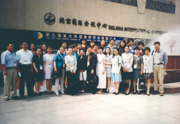 1988年,張乃崢教授帶領中華醫學會風濕病學分會加入亞太風濕病學會聯盟(APLAR),成為正式會員,使中國風濕病學界的聲音可以被更多國際同行聽到。圖為2000年6月中國首次承辦APLAR大會,前排右一為張奉春