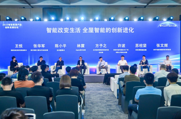 論壇上,深家協家具研究院副院長王悅、海爾智家三翼鳥市場總經理張華軍、云米科技創始人兼首席執行官陳小平、AQara綠米總裁林震、北京居然智慧家智能科技總經理 方予之、南物科城傳感技術(廣州)有限公司副總經理許波、華藝照明副總裁蘇柱堅、UIOT超級智慧家首席體驗官張文輝圍繞“智能改變生活 全屋智能的創新進化”這一主題,就萬物互聯生態以及產業未來發展趨勢和方向,分享了各自獨到的觀點和深刻見解,并提出了一些建設性的意見和建議。