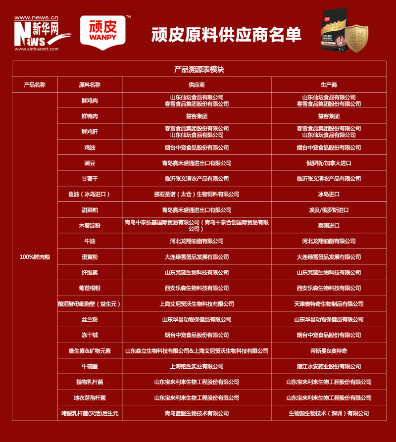 原料作為高品質貓糧的基礎,頑皮對標全球最高標準,透明公示所有原料溯源,其核心原料均與國內相關行業上市企業合作,做到原料全程透明可追溯。
