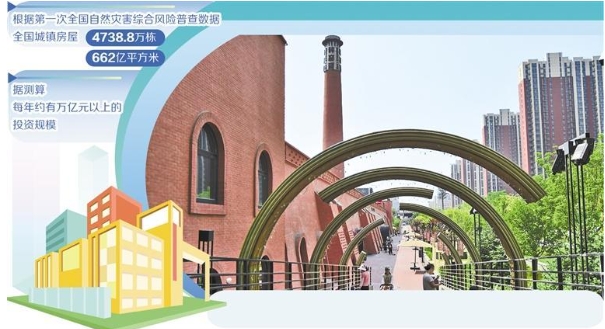 既有建筑改造能夠產生良好經濟效益?!兑庖姟芬?,加強老舊廠房、低效樓宇、傳統商業設施等存量房屋改造利用,推動建筑功能轉換和混合利用。住房和城鄉建設部政策研究中心戰略研究處處長、副研究員王彬武表示,根據第一次全國自然災害綜合風險普查數據,全國城鎮房屋4738.8萬棟、662億平方米。據測算,每年約有萬億元以上的投資規模。盤活存量低效的樓宇、商業設施等能夠更好吸引社會資本,為城市提供更多創新創業、時尚購物、休閑娛樂等空間。