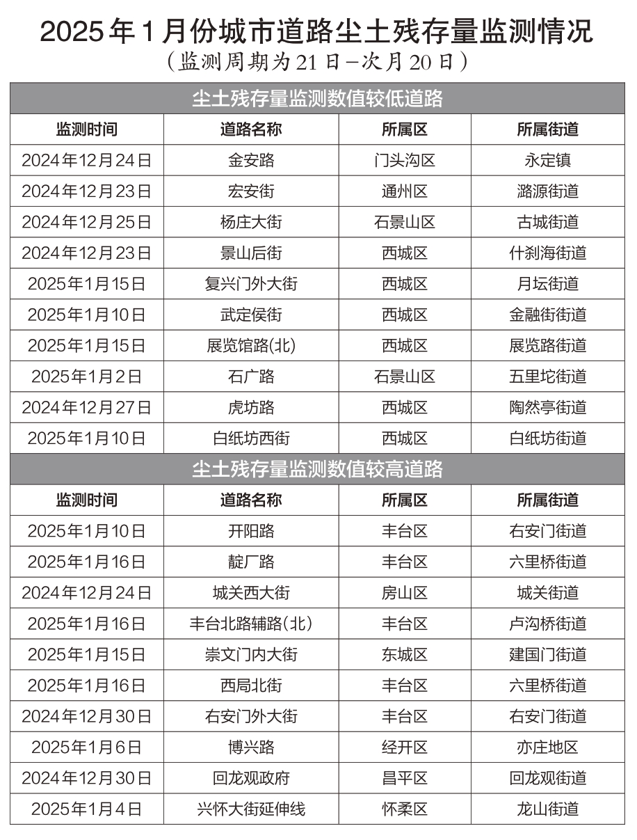 其中,各區一級道路均值為6.90克/平方米,二級道路均值為8.60克/平方米,環路(二三四環)均值為6.80克/平方米,跨區快速路(廣渠路、阜石路等)均值為6.30克/平方米,城市道路塵土殘存量在標準以內并穩中有降,道路揚塵得到有效控制。