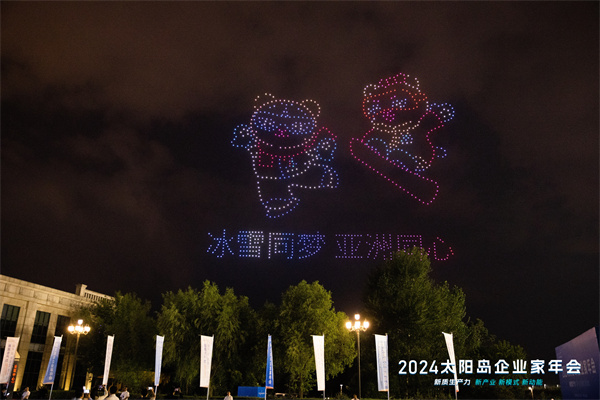 8月23日,2024太陽島企業家年會特色活動之一,無人機編隊表演在松花江畔的太陽島上進行。本場表演的主題是“新質生產力:新產業、新模式、新動能”。無人機編隊通過變幻的圖形和光影效果,在夜空中依次展示了大會的標識、主題口號及冰雪運動、亞冬會、馬迭爾冰棍等具有哈爾濱特色的畫面,呈現了“第二十六屆哈爾濱冰雪大世界”和“第三十七屆太陽島雪博會”等哈爾濱特色活動的場景,向世界展示了哈爾濱的獨特魅力和創新發展的無限可能。
