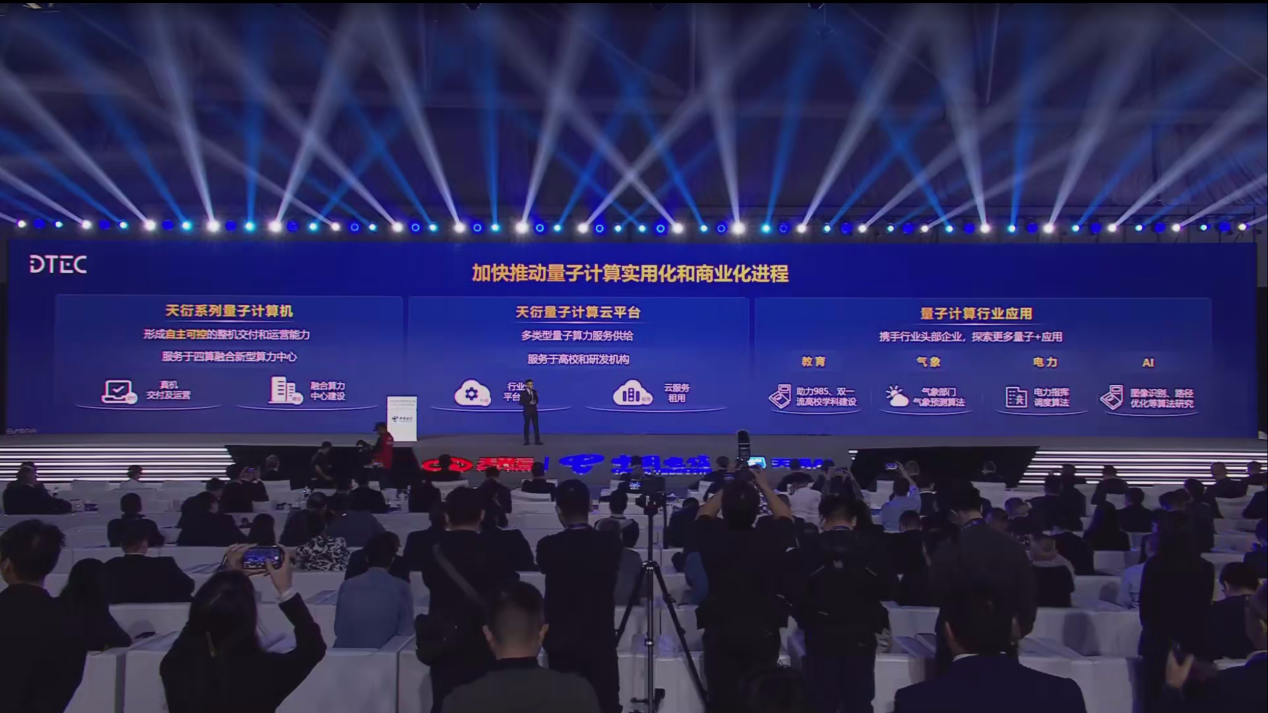 中國電信總經理梁寶俊介紹說,在量子科技方面,中國電信首創一網一池一平臺量子安全基礎設施架構,推出了全球首個超量融合量子計算云平臺,實現量子+系列產品規模商用,當前量子產業正邁入以規模應用促進產業成熟的新階段,中國電信將全力推動產、學、研、用生態互促,加速量子技術商用化進程,天衍量子計算云平臺已實現對科研院所、高校新興算力中心等客戶的開放服務。