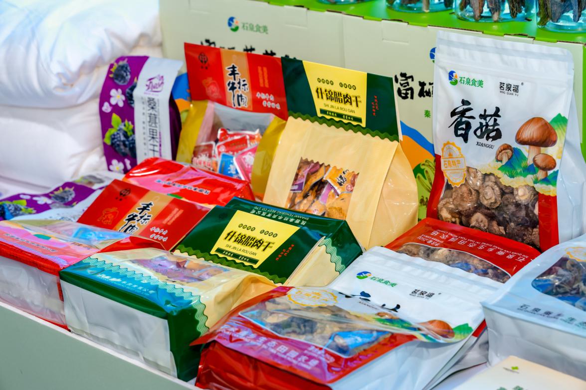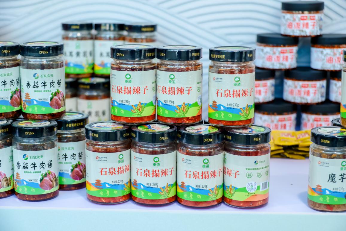 在石泉名品發布環節,陜西天成絲業、陜西金州農業、安康正興有機綠色食品、陜西十全鳴揚生物科技、石泉縣龍泉茶葉、安康越航農旅、秦嶺健康醫藥等企業競相發布各自“拳頭”產品。涵蓋了絲綢、醬料、黃花菜、雞蛋、柚子茶、黃精、艾草等近百種特色產品。
