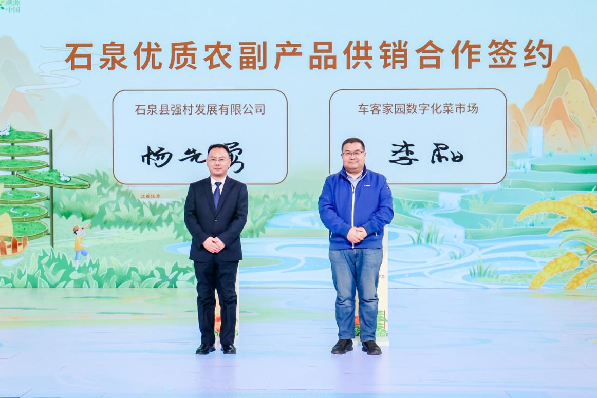 值得一提的是,現場,石泉縣強村發展有限公司與車客家園數字化菜市場雙方就石泉優質農副產品供銷達成合作簽約;陜西石泉食美小碗菜餐飲管理有限公司與禾沺悅色(北京)科技有限公司就石泉食美”小碗菜項目達成合作簽約。