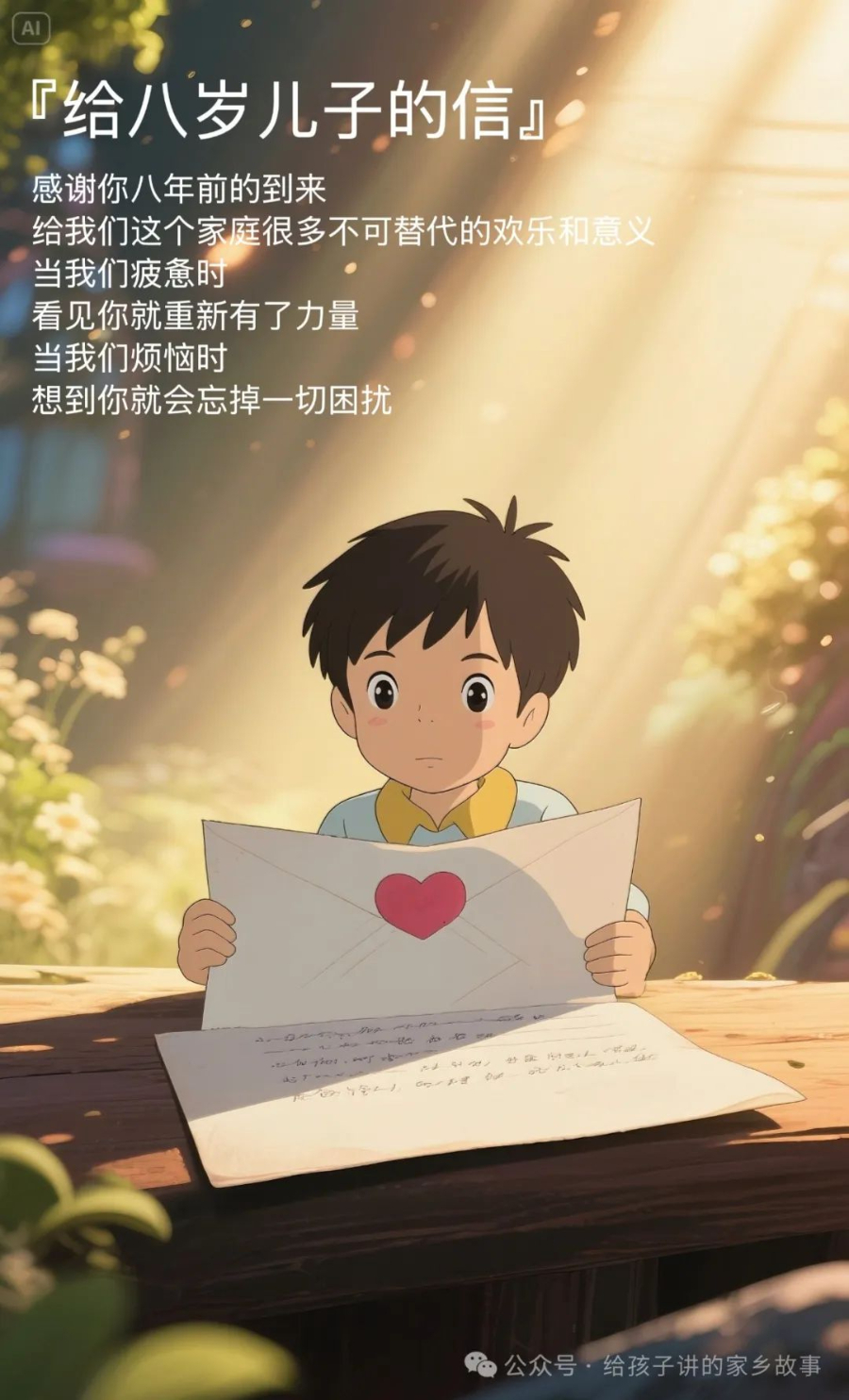這是第二次給你寫信。幼兒園畢業時曾因學校要求給你寫過第一封信。不知道你還記不記得?在給你講家鄉故事的這些日子里,我進一步感到,時間對每個人本質上雖然是一樣的,但其給孩子與大人的感受卻是不一樣的。雖然孩子們常說等不及了要長大,但孩子們不會覺得長大是個很快的過程。但對于大人來說,兩年的確是轉眼之間,除了變老之外可能沒有什么可感知的改變,但對于孩子來說,每年不短,每天可以過得很充實。這幾年特別是你讀小學的這兩年,我們看到你天天都有新的變化、新的收獲、新的成長。