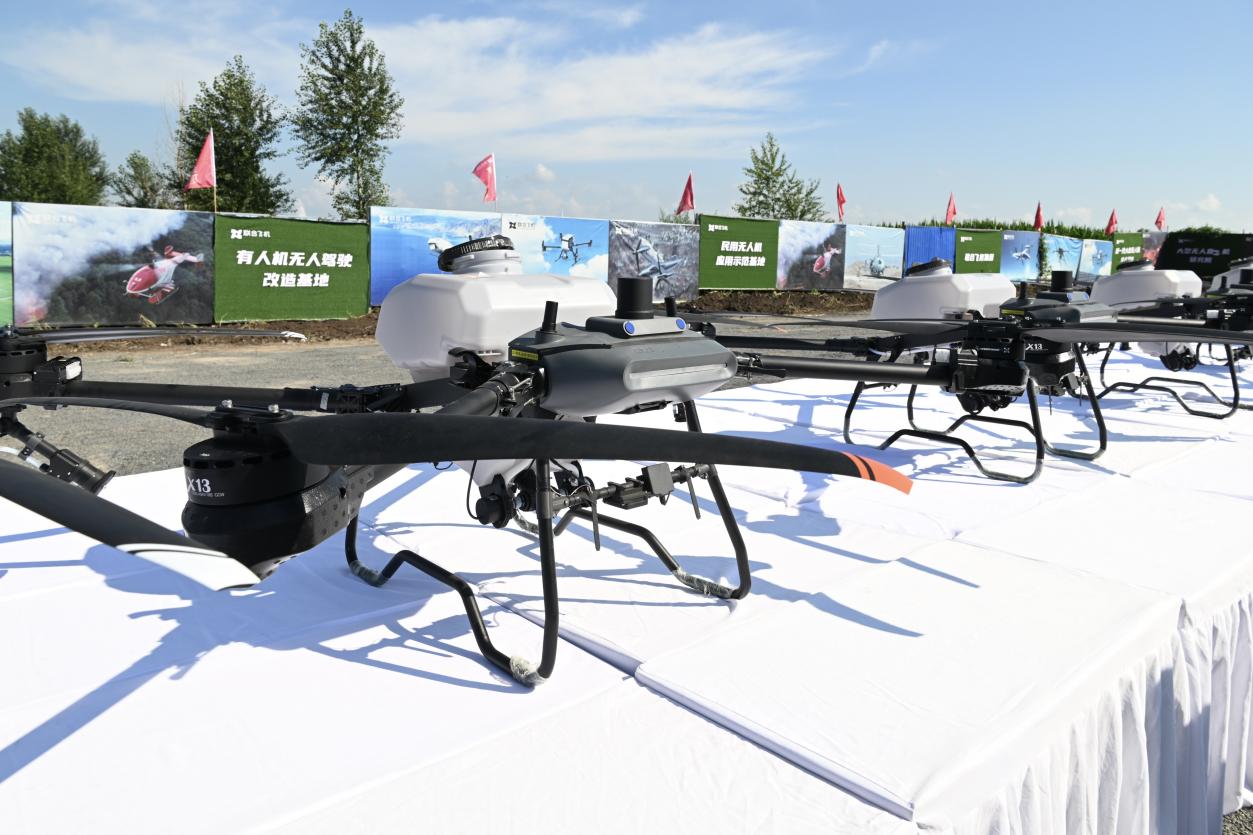 黑龍江省哈爾濱市平房區的聯合飛機基地的Q100農業無人機。新華社記者王松 攝