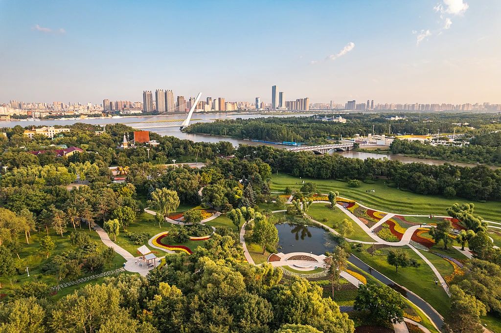 太陽島風景區景色(無人機照片)。新華社記者王松 攝
