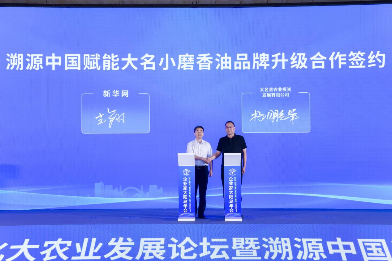 會上新華網溯源中國與大名縣晟農農業投資發展有限公司簽訂合作協議,攜手共贏,共同打造地方特色品牌,全面賦能大名地方品牌產品。