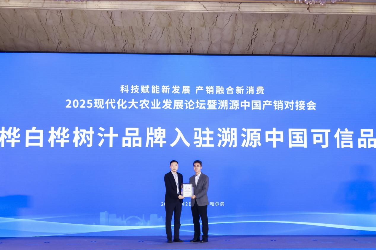 新華網哈爾濱8月2日電(趙海軍)“2025現代化大農業發展論壇暨溯源中國產銷對接會”8月2日在哈爾濱太陽島舉行。會上,伊春嘉樺生物科技有限公司(以下簡稱“嘉樺生物”)總工程師張宏明帶來“從生態龍江到健康未來 引領白樺樹汁產業新賽道”主題推介,深入解讀企業在白樺樹汁領域的技術突破與產業布局。同時,嘉樺生物成功入駐“溯源中國可信品牌”,其全產業鏈創新成果引發廣泛關注。