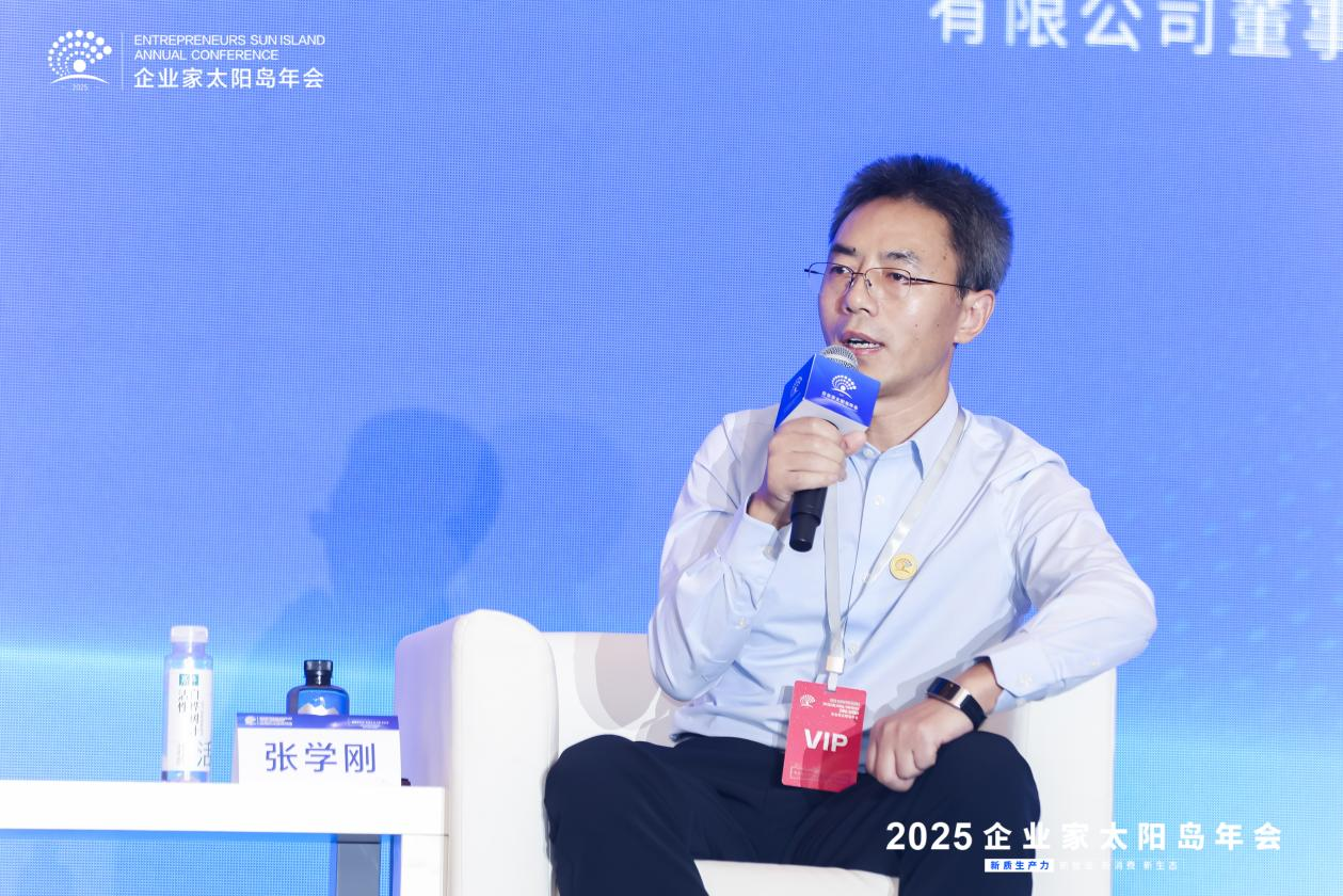 圖為伊春嘉樺生物董事長張學剛8月3日上午在2025企業家太陽島年會主論壇思客對話環節參與討論。